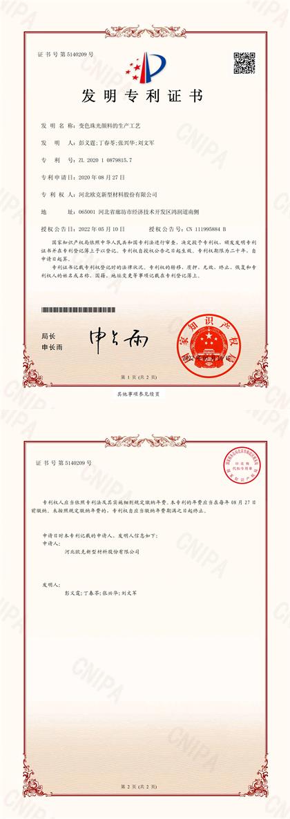 變色珠光顏料的生產(chǎn)工藝發(fā)明專利