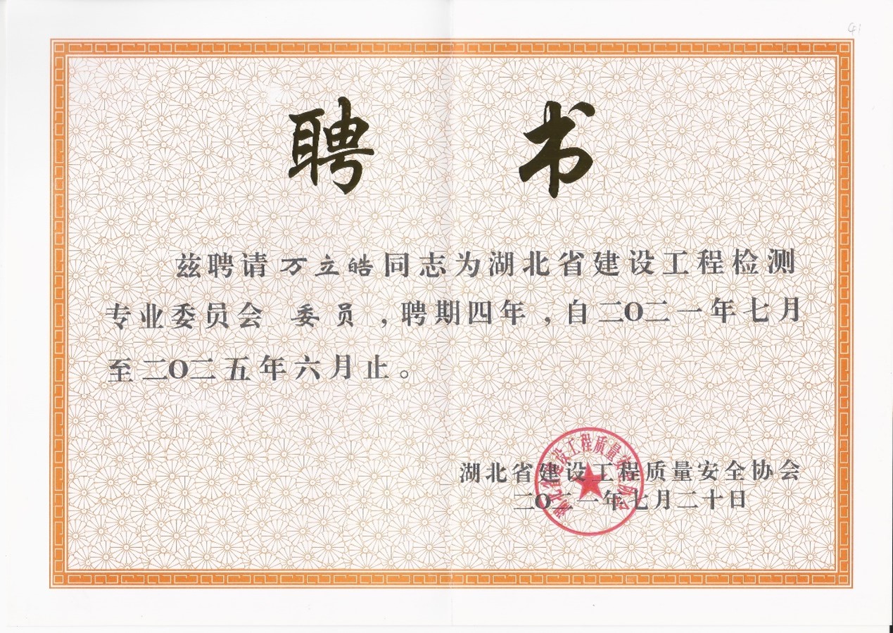 2021年7月20日,湖北省建設工程質量安全協(xié)會根據(jù)工作需要和《湖北省建設工程檢測專業(yè)委員會章程》(試行)要求,經開專題會研討和網上公示,確定第二屆湖北省建設工程檢測專業(yè)委員會組成人員。