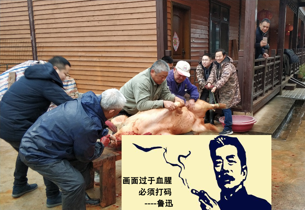 隨著一掛五萬(wàn)響爆竹轟鳴聲的響起,有人按住豬屁股,有人拉著豬大腿,開(kāi)始下刀……(所謂君子遠(yuǎn)庖廚,此處過(guò)于血腥,省略1538字)。
