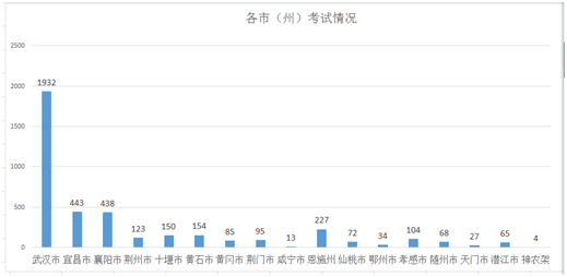 圖1:各市(州)考試情況(來源:鄂建質安協(xié)〔2019〕41號文)